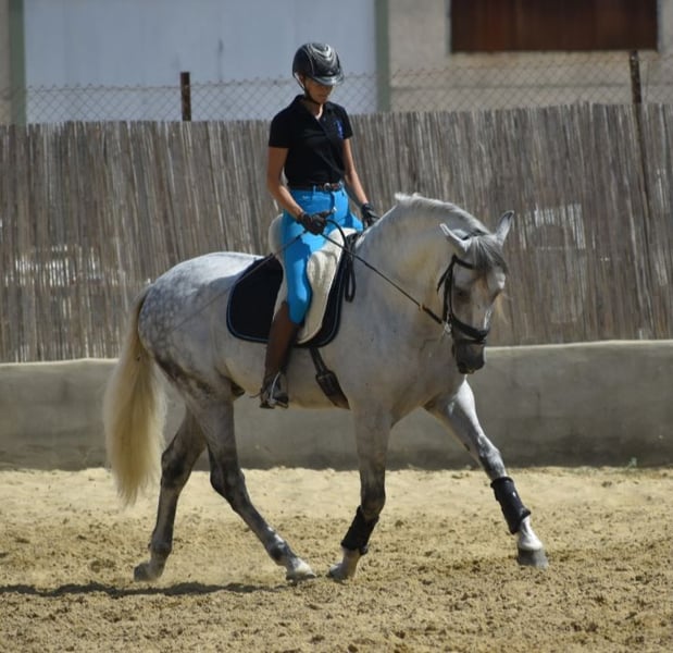 Our Magistral is a very versatile horse with an outstanding pedigree. He has good X-rays, is free of piroplasmosis, and is suitable for breeding. Standing at 16.1 hh, with an extremely noble temperament, he is suitable for any rider. He is just beginning his career in the changing of the foot and is a very safe horse both in the arena and on rides outside. He does not appear to be a stallion; his behavior is calm and noble. His direct sire is Norte Lovera, a remarkable stallion known for his nobility and who was an Olympic dressage horse. He is a horse for a family home and a true source of joy for the whole family. He is fearless and always eager to do his best. Easy to ride, he has a wonderful temperament. He is a horse with a big heart.