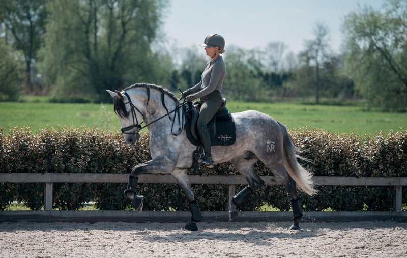 NL Stables Lucero NR is a beautiful approved stallion with a super sweet character. His impressive appearance immediately leaves an unforgettable impression. Lucero comes from the well-known breeder Yeguada Romerito in Malaga. He has three good gaits, a nice walk, an extremely spacious trot with strong hind leg use, and a very beautiful upward canter. It is a horse that moves with a lot of suppleness, a promise for the future. Lucero jumps a confirmed series and is being trained at the ZZ-heavy level. Lucero comes directly from the breeder and is fully approved. www.nlstables.com
