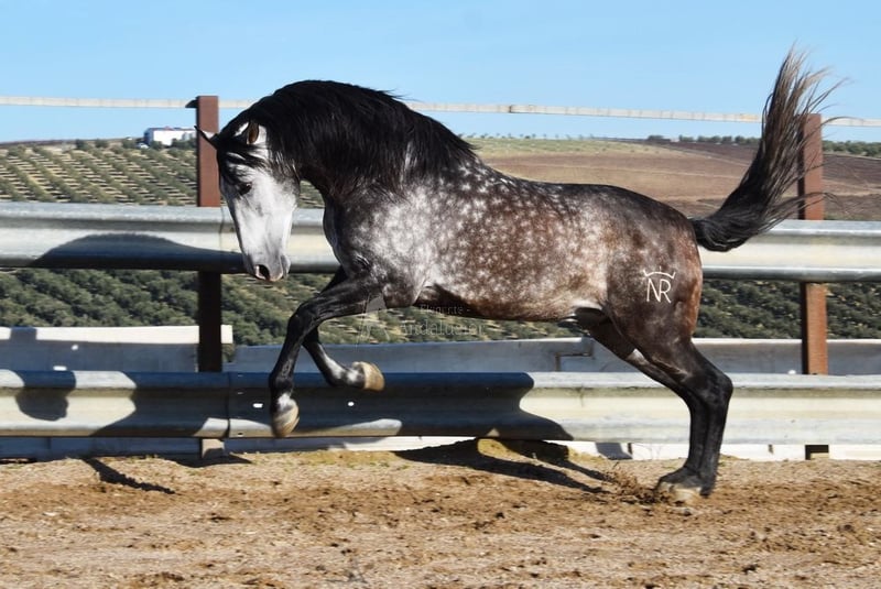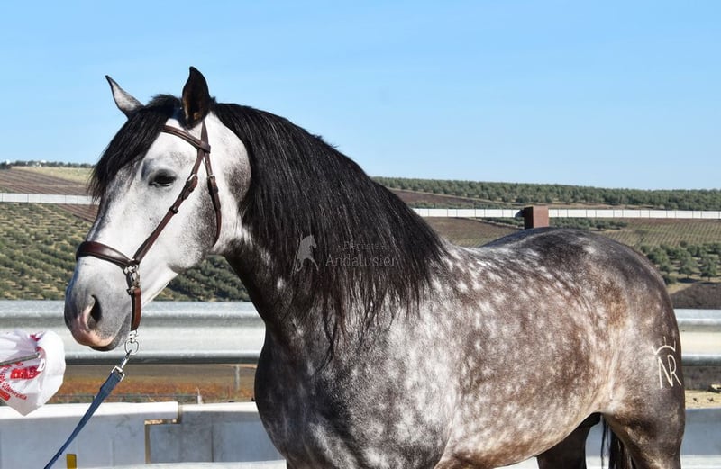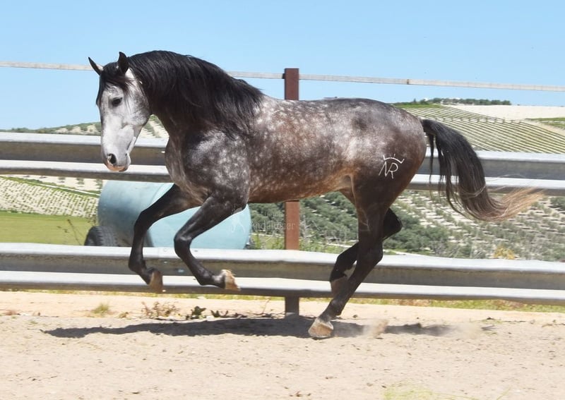 caractère doux, monté aux trois allures de base, reculer, beaucoup de terrain, Romería, très grand, baroque, bonne lignée, origine : Nicolas Romero, a plusieurs ancêtres qualifiés www.elegante-andalusier.com