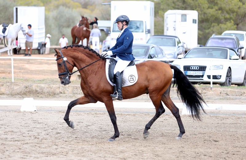 Barocker, kräftiger, braver PRE Hengst mit sehr guten Grundgangarten, korrektem Gebäude und einen super lieben und gutmütigen Charakter. Er zeigt keinerlei Hengstmanieren und man kann bequem mit anderen Pferden zusammen ausreiten. Er wurde stets gut umsorgt, versorgt und wurde immer von einem professionellen Reiter (Besitzer) Ausgebildet und geritten. Ausbildungsstand ist M Dressur, wo er schon erfolgreich gestartet ist. Für die Zucht ist er ebenfalls sehr interessant, da sein Opa Educado ein sehr bekannter Elite Hengst ist.