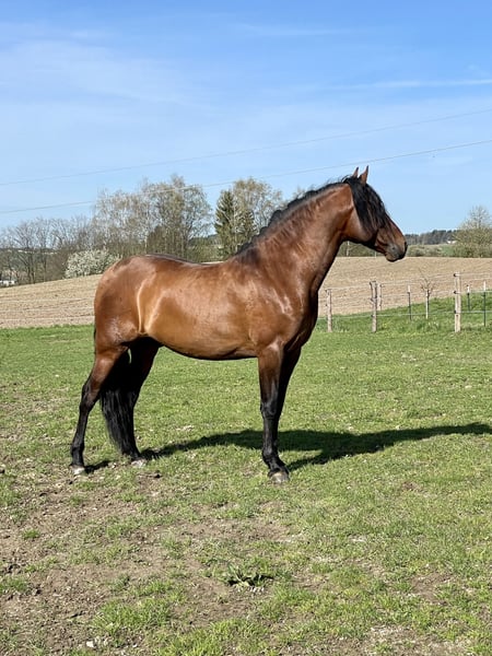 Schweren Herzens suche ich für meinen PRE-Hengst Tiburon Del Noble ein neues, liebevolles Zuhause. Aufgrund beruflicher Veränderungen kann ich ihm leider nicht mehr die Zeit und Förderung bieten, die er verdient. Tiburon ist 2018 geboren und seit Dezember 2022 bei mir. In dieser Zeit wurde er von mir selbst sorgfältig und mit viel Gefühl ausgebildet. Er ist im täglichen Umgang überhaupt nicht hengstig, stets respektvoll, klar im Kopf und einfach ein wahrer Schatz – ein Pferd, dem man vom ersten Moment an vertraut. Er ist vielseitig ausgebildet und arbeitet motiviert in verschiedenen Bereichen: - Freiarbeit, Bodenarbeit und Dressurarbeit (Piaffe, Passage, Außengalopp...) - Seitengänge in allen Gangarten - Spanischer Schritt, Kompliment - Traversalen im Trab und Galopp - Sicher alleine sowie in der Gruppe im Gelände zu reiten - auf Wassertrense ausgebildet Ich sehe in Tiburon großes Potenzial für die weitere dressurmäßige Förderung, Shows ebenso wie im Working-Equitation-Bereich. Durch seine Ausstrahlung, seinen Körperbau und sein korrektes Exterieur würde er sich zudem sehr gut bei einer Körung präsentieren und ist aus meiner Sicht auch ein hochinteressantes Pferd für die Zucht. Aktuell steht er in einer Paddockbox, geht regelmäßig auf die Koppel und zeigt sich dort ausgeglichen und zufrieden. Optisch ist er ein außergewöhnlich hübscher Hengst mit viel Präsenz, Eleganz und einem wundervollen, menschenbezogenen Charakter. Tiburon Del Noble ist kein Pferd „von der Stange“, sondern ein Partner mit Qualität, Seele und Zukunft. Ich wünsche mir für ihn einen Platz, an dem er weiter gefördert, wertgeschätzt und geliebt wird. Bei ernsthaftem Interesse freue ich mich über eine persönliche Nachricht.