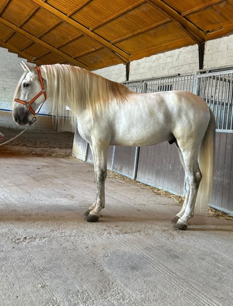 Beautiful PRE stallion with very good movements suitable for dressage. He is currently performing only basic gaits, as the owner is an amateur and has him as a hobby horse. We are now seeking a great home to help develop his potential and enhance his movements for dressage.