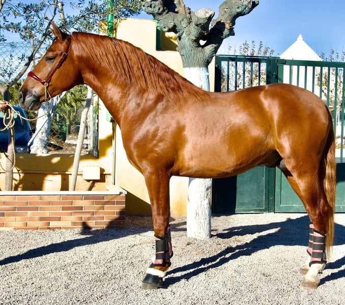 Precious sorrel stallion P.R.E. Barroco with a lot of beauty. He is very noble and has a great capacity to learn. Very good movements. Free of pyro and x-rays available. Location: Barcelona-Transport can be arranged.