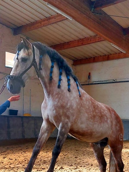Repleto is an absolute dream of a PRE stallion, he is zero stallions absolutely good in handling and of course under the saddle. Repleto is only sold into suitable hands who know what kind of treasure they are buying. Repleto is a horse with a top work attitude and a seat sofa. At the moment we are working with him .... Piaffe on the hand, started under the rider, Spanish step on the hand under the rider started side courses in all gaits, simple canter changes, half canter outings, podium, Of course, he has a top AKU. And is piro free Please prepare a trial via WhatsApp 00491629411208 Sales order !