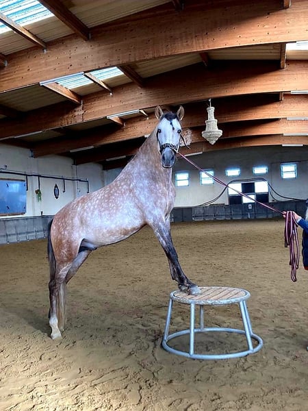 Im Kundenauftrag: Repleto ist ein top gerittener, absolut zuverlässiger PRE Hengst mit einem grandiosen Charakter und einer traumhaften Optik. Aktuell läuft er auf M-Niveau, springt einfache Wechsel, beginnt mit der Piaffe an der Hand und den halben Galopppirouetten. Auch die Arbeit an der Hand macht ihm viel Freude und er zeigt sich stets leistungsbereit und konzentriert bei der Arbeit. Selbstverständlich kommt er mit einer großen AKU und ist piroplasmose frei! Standort: Österreich Wir haben ständig um die 50 hochwertige Barock- & Sportpferde - roh bis Grand Prix geritten - im Portfolio. Bei Interesse sprechen Sie uns an oder besuchen Sie unsere Website www.majestic-horses.com