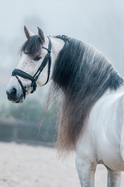 Elias Torreluna is a beautiful grey stallion with a golden character. Elias is a horse that steals your heart right away with his hugs, his beautiful long mane and his beautiful silver glow. He has 3 very good gaits. He possesses a good walk, a great trot with very good hind leg and an uphill canter that is easy to close, he super nice to ride and really gives you a wow feeling. Elias is a suitable horse for both an ambitious rider but certainly also for a novice rider. Elias is classified Z2 and is trained at ZZ light level, he has a lot of talent for passage piaf. Amzone is 1.78. NL Stables Elias Torreluna has already achieved many nice results with his young age. During the Dutch Championships MCI young horses 2023 he became reserve champion with an average score of 86%. Also, this PRE stallion did good business at the European Championships in Paris, he managed to win the first class in the young horses and achieved an overall bronze medal in this class. In the selection trail for the MCI 2024 European Championships, Elias became Dutch champion with a score of 73% in the test and 77% in the Freestyle Level 2. This qualifies him again for the EC MCI 2024 in Exloo. Here he earned the title European Reserve Champion Sevilla and won team gold again for the second time in a row in addition to individual silver. Besides his achievements in the ring at the MCI, Elias is also doing good business at the KNHS competitions. He has several wins to his name among the warmbloods in Z1 with scores around 68% and in Z2 with scores around 67%. Elias finished fourth in Z2 at the KNHS indoor championships 2025. Elias comes directly from the breeder Yeguada Torreluna, fully approved including neck and back.