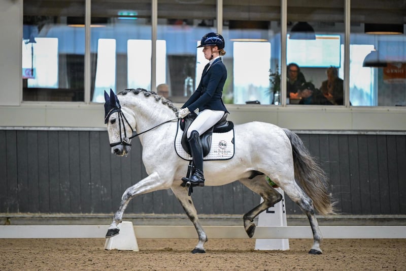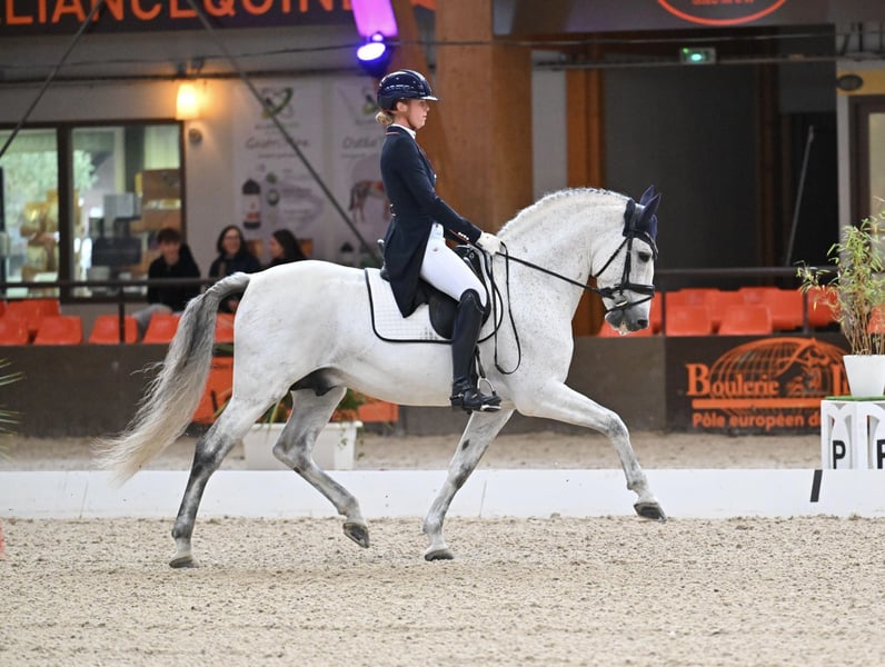 Elias Torreluna ist ein wunderschöner Schimmelhengst mit einem goldenen Charakter. Elias ist ein Pferd, das mit seinen Streicheleinheiten, seiner schönen langen Mähne und seinem schönen Silberglanz sofort dein Herz erobert. Er hat 3 sehr gute Grundgangarten. Er besitzt einen guten Schritt, einen tollen Trab mit sehr gutem Hinterbein und einen bergauf Galopp, der leicht zu schließen ist, er ist super schön zu reiten und gibt einem wirklich ein Wow-Gefühl. Elias ist ein geeignetes Pferd für einen ambitionierten Reiter, aber natürlich auch für einen Reitanfänger. Elias ist auf Z2-Niveau eingestuft und wird auf ZZ-Leicht-Niveau ausgebildet. Er hat viel Talent für Passage Piaf. Amzone ist 1,78. NL Stables Elias Torreluna hat in seinem jungen Alter schon viele schöne Erfolge erzielt. Bei den niederländischen MCI-Jungpferdechampionaten 2023 wurde er Reservesieger mit einer Durchschnittsnote von 86%. Auch bei den Europameisterschaften in Paris machte der PRE-Hengst gute Geschäfte, er gewann die erste Klasse bei den jungen Pferden und erhielt eine Bronzemedaille in dieser Klasse. Bei der Selektion für die MCI-Europameisterschaft 2024 wurde Elias niederländischer Meister mit einem Ergebnis von 73% im Test und 77% in der Kür Level 2. Damit qualifizierte er sich erneut für die EC MCI 2024 in Exloo. Hier gewann er den Titel des European Reserve Champion Sevilla und holte zum zweiten Mal in Folge Mannschaftsgold sowie Einzel-Silber. Neben seinen Erfolgen im Ring bei der MCI macht Elias auch bei KNHS-Wettbewerben gute Geschäfte. Bei den Warmblütern hat er mehrere Siege in der Z1 mit Scores um 68% und in der Z2 mit Scores um 67% vorzuweisen. Bei den KNHS-Hallenmeisterschaften 2025 wurde Elias Vierter in Z2. Elias kommt direkt vom Züchter Yeguada Torreluna, voll gekört einschließlich Hals und Rücken.