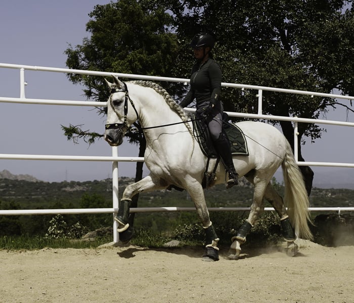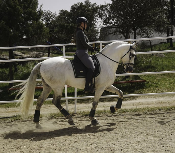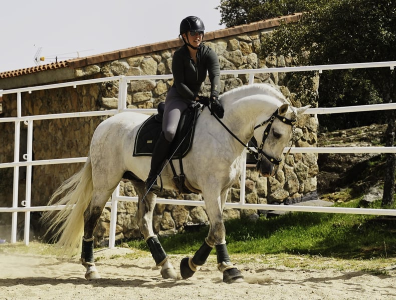 CENTENARIO SCG – Elegance, Nobility and Functionality in a Pure Spanish Horse Stunning Pure Spanish Horse (PRE) stallion, with exceptional beauty and a striking presence. 🔹 Name: Centenario SCG 🔹 Age: 9 years 🔹 Height: 1.61 m 🔹 Breed: Carthusian Horse (Cartujano bloodline) 🔹 Gender: Stallion * Centenario stands out for his true breed type, coming from prestigious Carthusian bloodlines, ensuring quality, nobility and functionality. He is a very easy horse to ride, suitable for riders of all levels. With excellent contact and softness in the hand, he always shows a willing and confident attitude. In movement, he offers expressive, balanced and comfortable gaits, perfect for both leisure riding and arena work. His character is noble, reliable and extremely manageable, and he is also a bombproof horse, fearless and confident in any environment. ✨ Key highlights: ⭐ Authentic Carthusian horse ⭐ Extremely easy and comfortable ⭐ Excellent contact ⭐ Good natural movements ⭐ Noble and safe character ⭐ Suitable for any type of rider ⭐ Safe horse, not spooky at all A horse that combines beauty, functionality and temperament, ready to be enjoyed from day one.