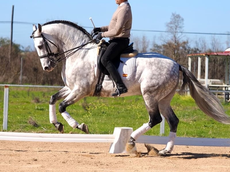 Wir präsentieren diesen eleganten Pura Raza Española Hengst, geboren im Jahr 2017, mit einem Stockmaß von 163 cm. Er überzeugt durch Balance, Funktionalität und eine sehr harmonische Silhouette unter dem Sattel. Der Hengst wird derzeit auf St.-Georg-Niveau gearbeitet, was nicht nur seine natürliche Qualität, sondern auch seine solide Ausbildung und seine Fähigkeit zeigt, Lektionen mittleren bis gehobenen Anspruchs sicher auszuführen. Besonders hervorzuheben sind die Regelmäßigkeit und Qualität seiner Grundgangarten: ein ausdrucksstarker Trab mit guter Aktion und Elastizität, ein bergauf gesprungener, ausbalancierter Galopp sowie ein klarer, raumgreifender Schritt. Dank seiner korrekten Mechanik, seiner natürlichen Versammlungsbereitschaft und seiner täglichen Arbeitswilligkeit bringt er beste Voraussetzungen für eine weitere Förderung im Dressursport mit. Charakterlich zeigt er sich edel, kooperativ und mental gefestigt, eine besonders wertvolle Eigenschaft bei einem Hengst. Seine Einstellung erleichtert das tägliche Training und macht ihn zu einem verlässlichen Partner für Reiter, die Sicherheit mit Qualität verbinden möchten. Röntgenbilder sind vorhanden und sorgen für Transparenz sowie Sicherheit im Kaufprozess. Eine hervorragende Gelegenheit für alle, die einen PRE Hengst mit bewiesenem Ausbildungsstand, sportlicher Perspektive und Eignung sowohl für den Turniersport als auch für die Zucht suchen.