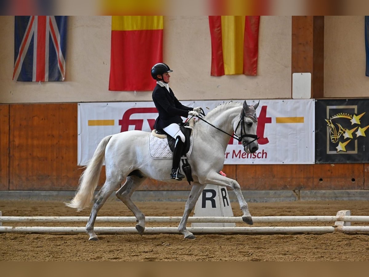 Verkaufe PRE Hengst – Schimmel, geb. 2017 Zum Verkauf steht ein eleganter PRE Hengst, geboren im Jahr 2017. Mit seinem beeindruckenden Stockmaß von 165 cm ist er sowohl optisch als auch in der Bewegung ein echter Blickfang. Der Schimmel begeistert durch seine elegante Erscheinung und seine vielversprechenden Dressurfähigkeiten. Siegreich bis M**Dressur.Dieses Pferd ist für den gehobenen Dressursport. Sehr brav und rittig. Kein Amateur Pferd. Der Hengst ist gut ausgebildet und zeigt ein vielversprechendes Potenzial im Dressursport. Er ist charakterstark, freundlich im Umgang und arbeitet motiviert an der Hand und unter dem Sattel. Ideal für ambitionierte Reiter, die einen zuverlässigen Partner für den Dressursport suchen. Bei Interesse oder weiteren Fragen stehe ich Ihnen gerne zur Verfügung. Eine Besichtigung und Probereiten sind nach Vereinbarung möglich.