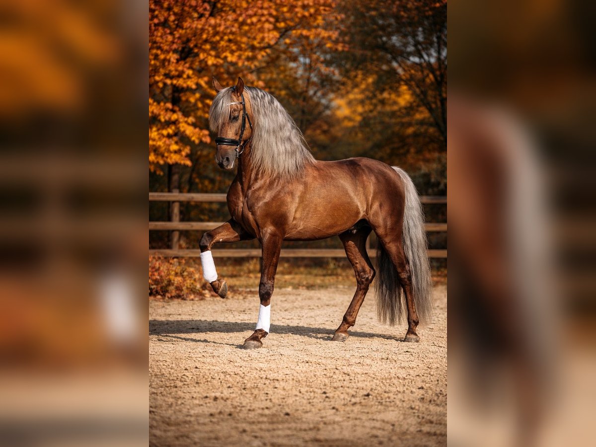 Pura Raza Española Stallion Estudioso de Viñuela All important information can be found on his homepage or on Facebook: https://estudioso-de-vinuela.jimdosite.com For all horse breeds! Estudioso de Viñuela Currently available for FRESH SEMEN 2025* EU-wide / very uncomplicated. From August onwards, available for natural breeding for a handful of mares. _ PRE stallion | sooty Palomino with cream gene and homozygous nd1 (Pseudo Dun). - 1.64 m and 6 years old. • Registered with ANCCE, Zfdp, and Azteka. Approved for foreign breeds* Estudioso de Viñuela is LICENSED by ANCCE. His previous foals impress with their conformation, size, charm, and color. Estudioso is a true rarity and the ONLY available PRE stallion in Germany with this special color! He is free from hereditary diseases such as PSSM, HERDA, GBED, HYPP, IMM, MH, and WFFS. He is homozygous nd1 (Pseudo Dun) and passes this special color pattern on to all his foals 100%! Estudioso attracts all eyes. With his coat that shines golden-copper and his gray mane, he leaves nothing to be desired as a special color. But he impresses not only with his coat color. Estudioso possesses three extremely powerful basic gaits, a strong and fearless temperament, and a good willingness to work. This makes it easy for him to master the high-level dressage movements well. His character is impeccable, and even at his young age, he shows himself to be willing to work, people-oriented, and strong-minded. He has a flawless veterinary examination with X-rays and no physical defects. Very well rated in conformation at the licensing. Location: NRW (Germany)