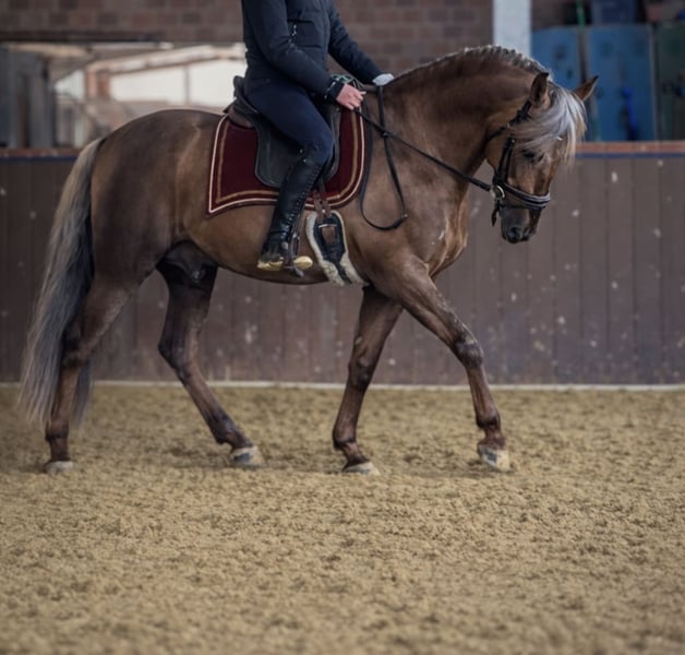 Pure Spanish Horse stallion Estudioso de Viñuela All important information can be found on his homepage or Facebook: https://estudioso-de-vinuela.jimdosite.com Suitable for all horse breeds! Estudioso de Viñuela Currently available as a FRESH SEMEN stallion for 2026* EU-wide / very straightforward. In February and August, he is available for natural cover for a select number of mares. _ PRE stallion | Sooty Palomino with Creme GEN and homozygous nd1 (Pseudo Dun). - 1.64 m (approx. 16.1 hh), 6 years old. • Registered with ANCCE, ZfdP, and Azteka. Approved for other breeds* Estudioso de Viñuela is licensed by ANCCE. His previous foals impress with their conformation, size, charm, and color. Estudioso is a true rarity and the ONLY available PRE stallion in Germany with this special color! He is free from hereditary diseases such as PSSM, HERDA, GBED, HYPP, IMM, MH, and WFFS. He is homozygous nd1 (Pseudo Dun) and passes this distinctive color pattern to 100% of his foals! Estudioso turns heads wherever he goes. With his golden-copper shine coat and his grey mane, he leaves nothing to be desired as a special color. But it’s not only his coat color that impresses. Estudioso boasts three incredibly expressive basic gaits, a strong and fearless temperament, and good work ethic. This makes it easy for him to master the high-level dressage movements. His character is impeccable, and even at a young age, he shows willingness to work, is human-oriented, and brave. He has an excellent health check (AKU) with radiographs and no physical defects. Highly rated for conformation at the licensing. Location: North Rhine-Westphalia (Germany)