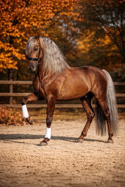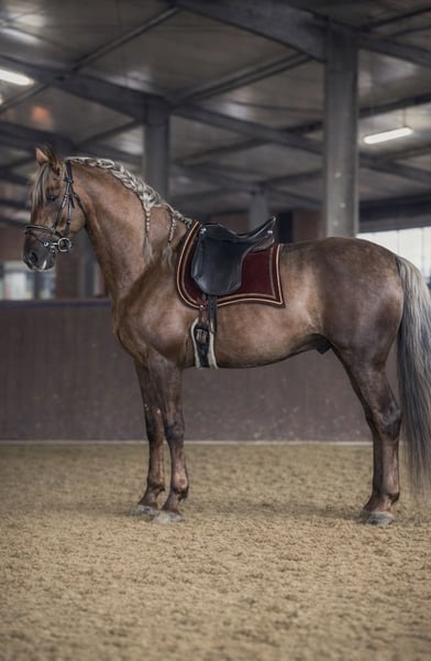 Hodowla ogier Pura Raza Española Estudioso de Viñuela Wszystkie najważniejsze informacje znajdziesz na jego stronie internetowej lub na Facebooku: https://estudioso-de-vinuela.jimdosite.com Dla wszystkich ras koni! Estudioso de Viñuela Aktualnie dostępny jako młody ogier w FRESCO (FRISCHSAMEN) na sezon 2026* w całej UE / bezproblemowo. W lutym i sierpniu dostępny do krycia naturalnego dla kilku klaczy. _ Ogier PRE | Sooty Palomino z genem kremowym i homozygotycznym nd1 (Pseudo Dun). Wysokość: 1,64 m, wiek: 6 lat. • Zarejestrowany w ANCCE, Zfdp i Azteka. Dopuszczony dla ras obcych* Estudioso de Viñuela jest KREWNY w ANCCE. Jego dotychczasowe źrebięta zachwycają wyglądem, wielkością, urokiem i kolorem. Estudioso to prawdziwa rzadkość i JEDYNY dostępny ogier PRE w Niemczech o tej wyjątkowej barwie! Jest wolny od chorób genetycznych takich jak PSSM, HERDA, GBED, HYPP, IMM, MH i WFFS. Jest homozygotyczny nd1 (Pseudo Dun) i w 100% przekazuje tę unikalną barwę wszystkim swoim źrebiętom! Estudioso przyciąga spojrzenia. Jego złoto-kuprowy połysk sierści i siwa grzywa sprawiają, że wyjątkowa kolorystyka nie pozostawia nic do życzenia. Ale nie tylko jego kolor zachwyca. Estudioso posiada trzy imponujące podstawowe chody, silny i odważny temperament oraz chęć do pracy. Dzięki temu doskonale radzi sobie z wysokimi poziomami jazdy klasycznej. Jego charakter jest bez zarzutu, a już jako młody koń wykazuje chęć do pracy, jest przyjazny wobec ludzi i odważny. Ma bez zarzutu badanie AKU z rentgenem i brak jakichkolwiek wad fizycznych. Bardzo dobrze oceniany pod względem budowy ciała podczas oceny hodowlanej. Lokalizacja: Nadrenia Północna-Westfalia (Niemcy)