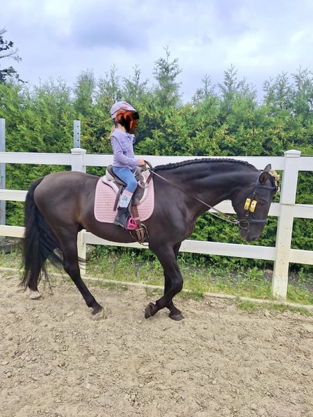 Pluto is available for your mares again this year. In addition to his breeding license with the ANCCE, he is also licensed as a breed breeder with the Rhineland Horse Breeding Association and the ZFDP. The stallion has a baroque appearance with luxuriant black hair. As a rule, he also passes on the color. He is absolutely easy to handle. He is completely unfamiliar with "stallion manners". There are never any difficulties, either at work or in "normal daily handling". Pluto is rideable, hard-working and always with his rider. He is a classic representative of the old breed. Both in terms of size and general appearance. His excellent pedigree guarantees outstanding foals. You are welcome to view some of his foals at our stables. Pluto is naturally bred. TK Sprerma is available