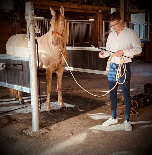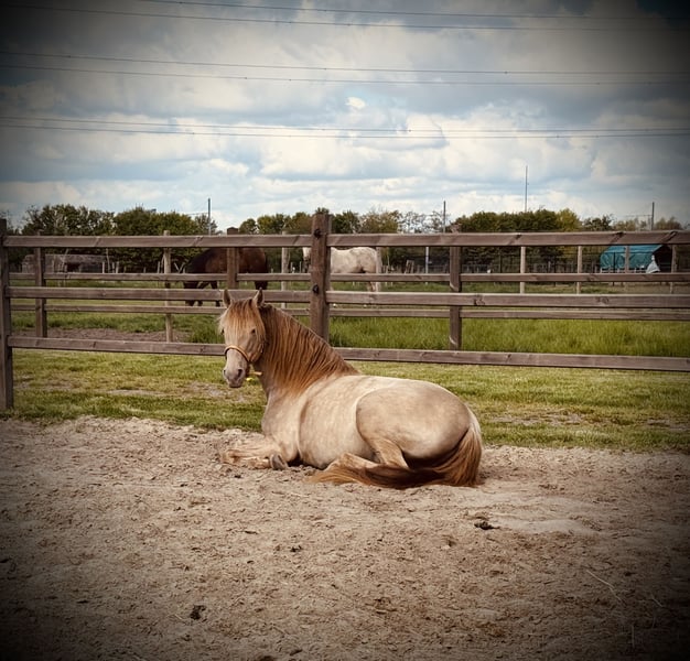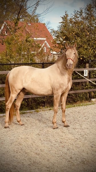 Jerezano CXC Onze jonge dekhengst. Deze prachtige APTO gekeurde PRE dekhengst is geboren op 24/03/2021 en gefokt door Haras de la Rodge Creux. Hij is de zoon van Deleitoso De Narbon (vader) en Emperadora XLVI (moeder). Zijn karakter is te omschrijven als lief, nieuwsgierig en rustig, met af en toe een momentje van “hier ben ik”. Zijn prachtige goudachtige kleur heeft hij te danken aan zijn dubbel pearl verdunningsgen. Zijn kleur is gekend als Black Double Pearl. Verder heeft hij een mooie barokke uitstraling en bewegingen die eigen zijn aan het spaanse ras. Ruim, krachtig met een mooie knie-actie. Jerezano is beschikbaar voor dekkingen en is RX gekeurd. Wij werken steeds met een levend - veulen garantie. Contacteer ons 0478276134