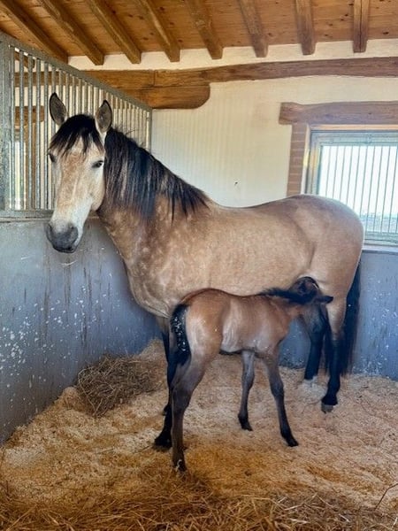 Hochwertiges PRE-Hengstfohlen aus liebevoller Aufzucht in Italien Zum Verkauf steht ein vielversprechendes PRE-Hengstfohlen aus sorgfältiger Zucht und besten Linien. Der junge Hengst wächst bei uns in Italien im Herdenverband auf und genießt eine artgerechte, naturnahe Aufzucht. Von Beginn an wird er liebevoll betreut und lernt alles, was er für ein ausgeglichenes und vertrauensvolles Pferdeleben benötigt. Er ist täglich im Kontakt mit: - anderen Pferden im Herdenverband - Menschen - landwirtschaftlichen Maschinen - Autos und verschiedensten Umweltreizen So entwickelt er sich zu einem nervenstarken, gut sozialisierten und menschenbezogenen Pferd. Seine Abstammung überzeugt auf ganzer Linie: Die Mutter ist eine gekörte PRE-Stute, der Vater ein gekörter PRE-Hengst mit zahlreichen Erfolgen im Dressursport. Bis zur Abgabe wird er selbstverständlich altersgerecht erzogen und beherrscht das Fohlen-ABC (Halfterführigkeit, Hufe geben, Umgang etc.). Die Abgabe erfolgt nach individueller Absprache im Alter von etwa 6 bis 12 Monaten.