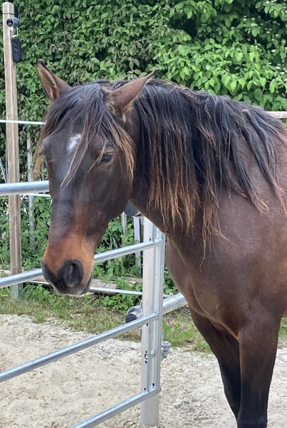 Aduanero Irja, genannt Nero sucht seinen Herzensmenschen: - P.R.E, geboren 25.9.2016, gesund, ekzemfrei - 5-jährig kastriert, 167 cm groß, Braunfalbe - barhuf, ranghoch, leichtfuttrig und sehr sensibel Ich habe mir Nero vor 2 Jahren als Kumpel für meinen 10-jährigen Murgesen gekauft. Beide Pferde stehen in einem Selbstversorgerstall in sehr großen Paddocks nebeneinander. Sie bewachen gegenseitig ihren Schlaf, gehen gemeinsam auf die Koppel, spazieren etc. wurden aber leider keine Freunde. Da sie charakterlich sehr unterschiedlich sind, matcht es einfach nicht zwischen Ihnen. Das liegt mit an der Eifersucht des Murgesen. Beide Pferde möchten einen Menschen für sich und "The one and only" sein. Nero sucht einen ruhigen aber souveränen Menschen mit niedriger Energie, der viel mit ihm unternimmt und Anschluss an eine Wallach- / Hengstherde. Aus dieser Haltung (Offenstall) kam er auch. Nero wird seit 2 Jahren von mir akademisch gearbeitet, ist äußert talentiert, lernt unheimlich schnell, liebt Bodenarbeit in jeglicher Form, ist immer aufmerksam, willig und mutig. Mit Begeisterung macht er Agility, Extrem Trail und ist für jeden Spaß zu haben. Über ein Jahr bin ich ihn geritten, in Begleitung auch im Gelände - hier ist er sehr souverän -, bis ich in der Halle einmal heruntergefallen bin, weil er sich erschreckt hat. Seitdem hat Nero davon ein kleines Trauma. Derzeit wird er nicht geritten. Von Mitte November 2025 bis Januar 2026 kam 2-3x pro Woche eine bekannte akademische Trainerin zu uns und hat mit Nero gearbeitet. Sie hat in der kurzen Zeit unfassbar viel erreicht. Leider kann sie aufgrund des vollen Terminkalenders nicht weiter zu uns kommen, da die Fahrt zu weit ist. Ich wünsche mir die passende Person für Nero, die nur für ihn da ist, Erfahrung in akademischer Arbeit hat, Haltung im Offenstall mit Pferdekumpeln bieten kann, Bodenarbeit liebt und sich, wenn Reiten gewünscht ist, mit seinem Trauma auseinander setzt. Es fehlt nicht mehr viel. Nero ist im Winter eingedeckt und bringt seine "Garderobe" und Einiges an Zubehör mit. Es handelt sich nicht um einen Notverkauf!!! Aufgrund kürzlich aufgetretener, gesundheitlicher Probleme, die bleiben werden, kann ich auf Dauer 2 Pferden nicht mehr gerecht weden, zumal sich beide wünschen, das einzige Herzenspferd zu sein. Der Preis ist Nebensache, wenn sich der passende Mensch findet. Ein ausführliches Kennenlernen ist ausdrücklich erwünscht. Daher wäre eine Person aus dem größeren Umkreis von Nürnberg von Vorteil. Ich freue mich über aussagekräftige Nachrichten. Nach einem Telefonat kann ich Videos verschicken. Es gibt einige :-). Zögert nicht mich zu kontaktieren.