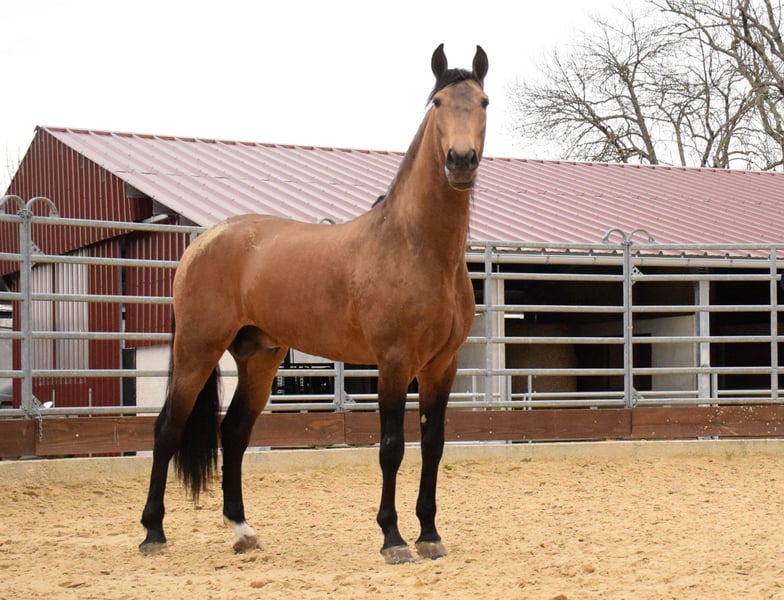Dolar JC ist 10 Jahre alt und misst 1,63 m. Sein IGG wurde bei Morphologiewettbewerben in Spanien mit 107 % bewertet. Seine Mutter stammt aus der berühmten Zucht Peralta! Über seine Herkunft hinaus zeigt Dolar eine echte Leichtigkeit unter dem Sattel. Sehr gut gearbeitet, beherrscht er die Lektionen der hohen Schule: Wechsel im Zweitakt, Passage, Piaffe, Spanischer Schritt, Ansatz zur Pirouette. Er ist ein sensibler und liebenswerter Pferd, großzügig unter dem Sattel und neugierig auf Interaktion. Der ideale Sportpartner für einen Reiter oder eine Reiterin, die ihr Dressurreiten vorantreiben und gleichzeitig eine exklusive Beziehung zu diesem ebenso feinen und raffinierten wie ausdrucksstarken Pferd entwickeln möchte. Sein Röntgenbefund ist perfekt und auf Anfrage verfügbar. Wie alle Pferde, die zu Alegria kommen, wird Dolar nach dem Curriculum der Beziehung von Komplizenschaft® ausgebildet, unserer Ausbildungsmethode, die Ihnen Sicherheit und Gelassenheit garantiert. Es besteht die Möglichkeit, ihn sofort zu reservieren und seine Entwicklung mit unserer Unterstützung auf dem Gestüt oder durch unser Online-Training fortzusetzen. Preis auf Anfrage, variabel je nach Ausbildung des Pferdes.