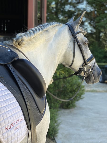 Jack wurde langsam und sorgfältig aufgezogen und ist nun bereit, sein neues Zuhause zu finden. Wir würden uns wünschen, dass er sachkundige Besitzer findet, die keine Reitanfänger, Jungpferde oder hantierende Hengste sein sollten. Er ist sehr liebenswürdig und freundlich, ein sicherer Ritt, aber er ist ein vorwärts denkendes und vorwärtsgehendes Pferd. Er hat 3 fantastische Grundgangarten und wird bis zur Grundstufe ausgebildet. Er machte seine ersten Erfahrungen bei einem Dressurturnier und war ein Traum, den ganzen Tag zu reisen, sich vorzubereiten und zu reiten! Wir hätten von ihm für seinen ersten Ausritt nicht mehr verlangen können! Er ist gut zu beschlagen, zu scheren, zu reisen, zu hacken. Wir empfehlen Anfängern oder unerfahrenen Reitern keine jüngeren Pferde oder Hengste.