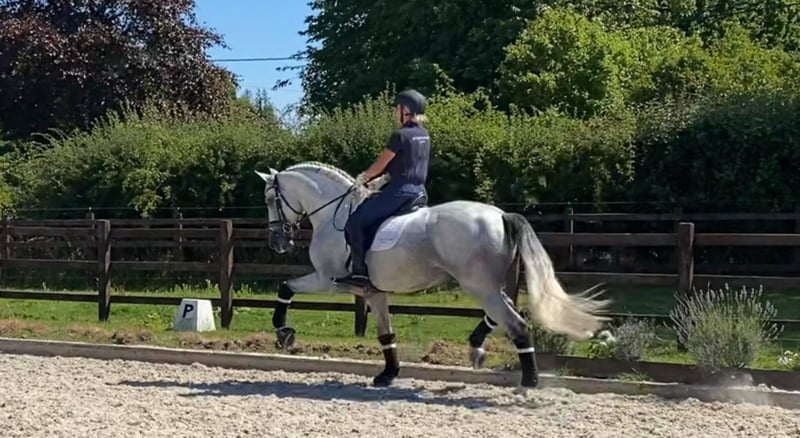 Jack has been slowly and carefully produced and is now ready to find his new home. We would wish for him to find knowledgable owners who should not be novices to riding, young horses or handeling stallions. He is very kind and friendly, a safe ride but is a forward thinking and going horse. He has 3 fantastic basic gaits and is schooled and competed at elementary, currently preparing for Medium level. He is a joy to take out to compete and will travel happily and wait by himself by the lorry. He is good to shoe, clip, travel, hack. He was Advertised as a Stallion and has now been gelded, due to no fault of his own but to make him more easy toacomodate in UK stables for his future owners.