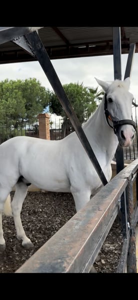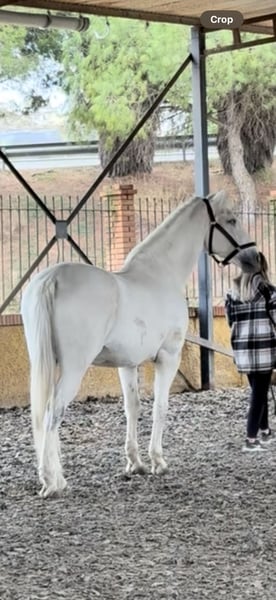 **For Sale PRE Horse - Gray, 172 cm** Unique opportunity for horse riding enthusiasts! A magnificent Purebred Spanish Horse (PRE), gelding, born in 2007, is offered for sale. This elegant gray stands at 172 cm, making him an ideal companion for both classical dressage and various equestrian activities. His balanced temperament and over 10 years of training in classical dressage make him suitable for riders of different experience levels, especially for children and novice riders. He is a very manageable horse, with a noble and willing character, perfect for those looking for a reliable partner in the arena. If you are interested in learning more about him or scheduling a visit, please do not hesitate to get in touch. Don’t miss the opportunity to bring home this exceptional horse!
