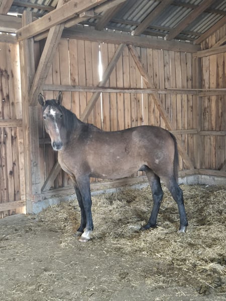 For sale is an exceptional young PRE stallion. Cocu de Palojo comes from a renowned breeding farm and has grown up entirely in an environment that meets all natural needs on over 2.5 acres. He is sired by ULES (IMPACIENTE), known for producing particularly intelligent, willing-to-work offspring with excellent conformation. His dam carries a significant amount of Cartujano bloodlines. Cocu is currently kept in an open stall with other stallions; he is very social, curious, and affectionate. He has a correct and solid foundation, large hooves, and is still in a growth phase. He can be castrated from mid-February 2026. We also offer starting under saddle. I have already trained two of his siblings. He is regularly dewormed and vaccinated, and he is accustomed to dogs, children, machinery, and other everyday noises.