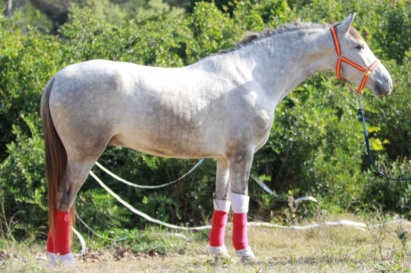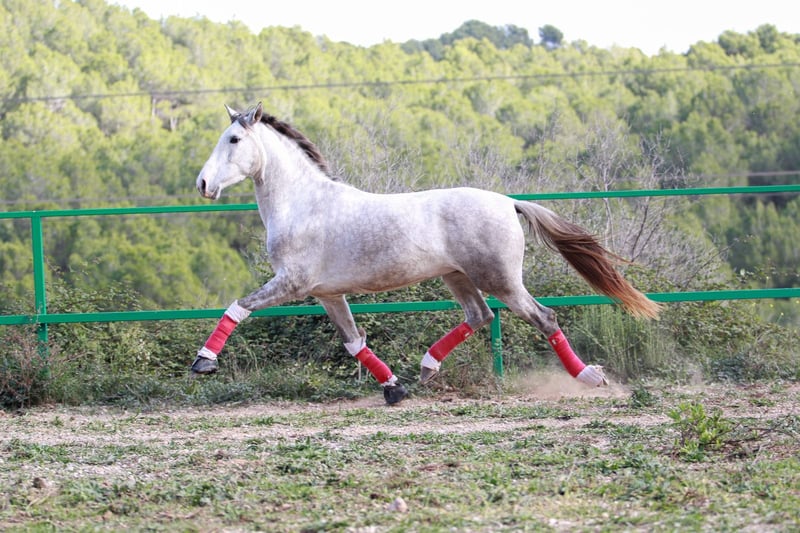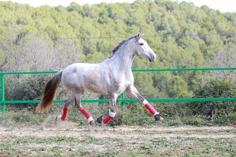 PRE-Wallach, 3,5 Jahre alt, äußerst brav und leicht zu reiten, 1,60 m mit Widerrist. Herkunftsvolle Abstammung (LOPEZ-MONIS). Pferd geeignet für Reiter aller Erfahrungsstufen.