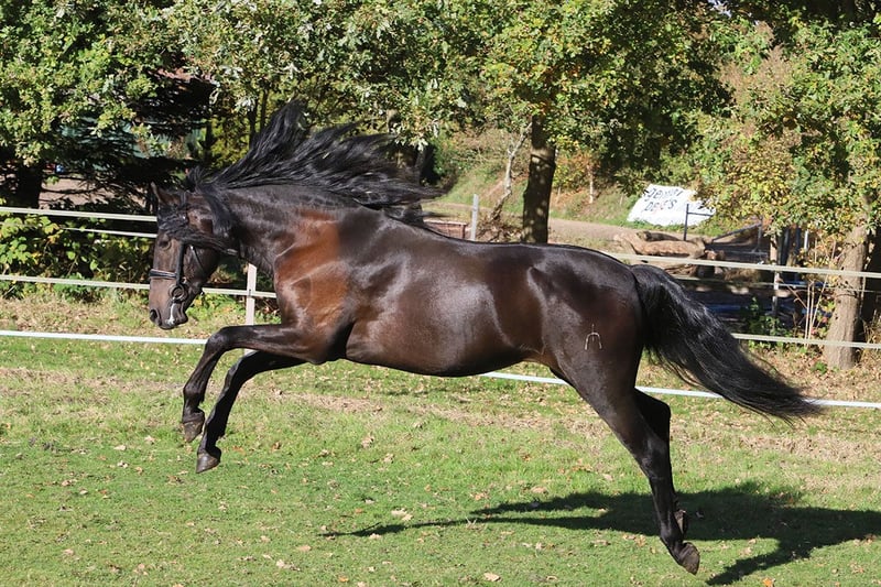Dieser erst 3-jährige PRE-Wallach besticht durch sein ausgeglichenes Wesen, seine natürliche Präsenz und seine liebenswürdige Art. Schon sein Name verrät, was ihn ausmacht: Encanto – „Zauber“ oder „Charme“ – und genau das verkörpert er in jeder Hinsicht. Mit seinem typvollen Exterieur, der langen, dichten Mähne und seinem ausdrucksstarken Blick erfüllt er das Bild des klassischen Pura Raza Española. Sein Charakter ist dabei ebenso beeindruckend wie seine Erscheinung: menschenbezogen, freundlich, aufmerksam und stets bemüht, alles richtig zu machen. Encanto ist seit kurzer Zeit schonend angeritten und zeigt sich unter dem Sattel willig, konzentriert und überaus lernfreudig. Er bewegt sich taktsicher in Schritt, Trab und Galopp und lässt bereits jetzt sein gutes Gleichgewicht und seine natürliche Versammlungsbereitschaft erkennen – beste Voraussetzungen für eine Karriere in Dressur, Working Equitation oder als edles Freizeitpferd. Seine Abstammung vereint bewährte Linien mit bester spanischer Zuchttradition: Väterlicherseits ist Encanto von der Yeguada Militar geprägt, mit der bedeutenden Linie des Remache, bekannt für Rittigkeit, Kraft und Adel. Mütterlicherseits führt er Escalera-, Guardiola- und Terry-Blut, das für Typ, Ausdruck und hervorragendes Temperament steht. Ein junger Wallach, der alle Anlagen mitbringt, um sich zu einem echten Herzenspferd und sportlichen Partner zu entwickeln – ein Pferd mit Verstand, Schönheit und Seele. Encanto – ein Name, der Programm ist.