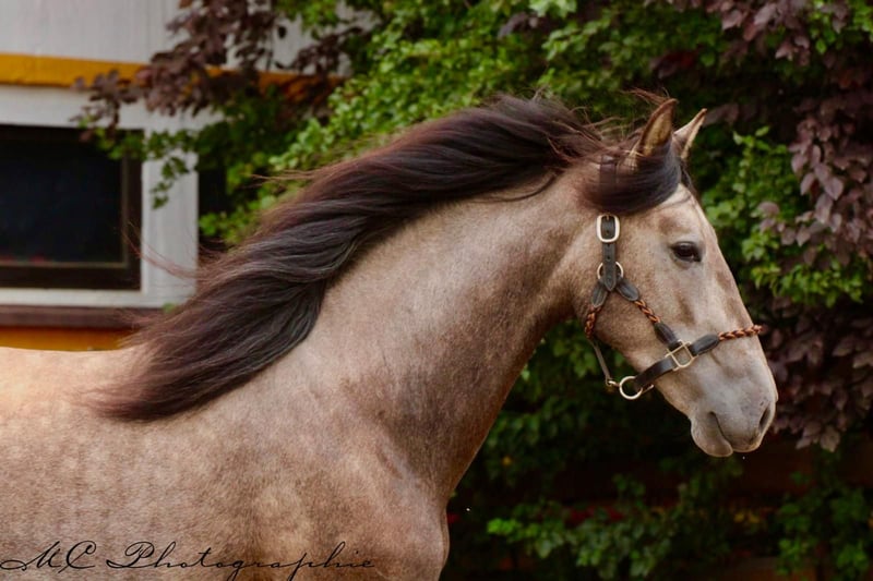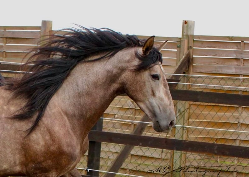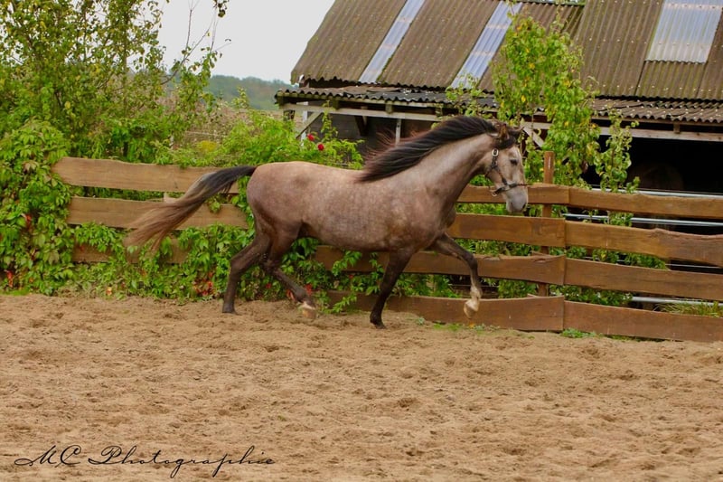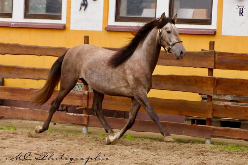 **Sale ad: Elegant PRE stallion in his prime** For sale is an impressive PRE stallion, born in 2022. This young gray stallion impresses with his elegant appearance and a height of 157 cm. He already shows great talent and potential in dressage. **Characteristics:** - Breed: Pura Raza Española (PRE) - Sex: Stallion - Year of birth: 2022 - Color: Grey - Height: 157 cm - Discipline: Dressage This stallion is not only an eye-catcher, but also a promising partner for ambitious dressage riders. If you are interested and would like further information, please do not hesitate to contact us.
