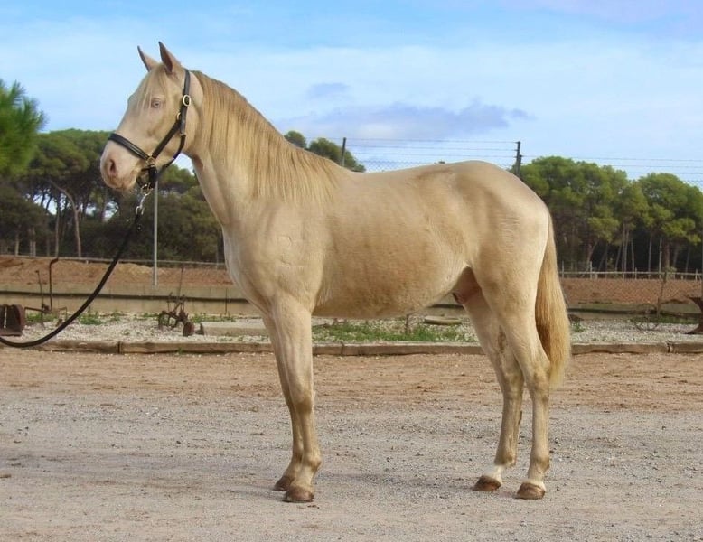 This stunning PRE gelding in a special color is searching for his soulmate. His papers list his color as Cremello, but visually he appears more like an Isabelo. Temperament-wise, he is a very sweet, friendly, curious, and polite young horse. He is 3 years old and currently approximately 1.54 m (15.1 hh) tall. Fully grown, we estimate him to reach about 1.57-1.58 m (15.3-15.4 hh). He already knows the basics of foal training and is currently being prepared for saddle breaking, which he handles very patiently and willingly. In the future, we see him excelling in many disciplines, including dressage, working equitation, show jumping, or simply as a leisure partner. He spent his early years in a large herd of mares and foals on pasture, and at around 8 months old, he was separated from his mother and able to develop in a young stallion herd. He has now been stabled and is familiar with the box. X-rays have already been taken and show no abnormalities. Location: Barcelona, Spain. A meeting in Spain and transportation can be arranged without any issues.