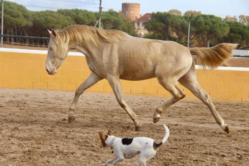 Ce magnifique hongre PRE en couleur spéciale recherche son âme sœur. Son pedigree indique la couleur Cremello, mais il ressemble davantage à un Perlino d’un point de vue visuel. Côté caractère, il est très gentil, très sociable, curieux et poli. Il a 3 ans et mesure actuellement environ 1,54 m. À l’âge adulte, nous estimons sa taille à environ 1,57-1,58 m. Il connaît déjà le début du travail en liberté et est en train d’être préparé pour le débourrage, ce qu’il accepte très volontiers. À l’avenir, nous pouvons l’imaginer dans de nombreux disciplines, que ce soit en dressage, en équitation de travail, en concours ou simplement comme partenaire de loisirs. Il a passé son enfance dans une grande harde composée de juments et de leurs poulains en pâture. À environ 8 mois, il a été séparé de sa mère et a pu s’épanouir dans une harde de jeunes hongres. Il a maintenant été mis en boxe, ce qui lui permet de connaître également l’écurie. Il possède déjà des radiographies sans anomalie. Lieu : Barcelone, Espagne. Une rencontre en Espagne est possible, et l’organisation du transport peut être facilement assurée.