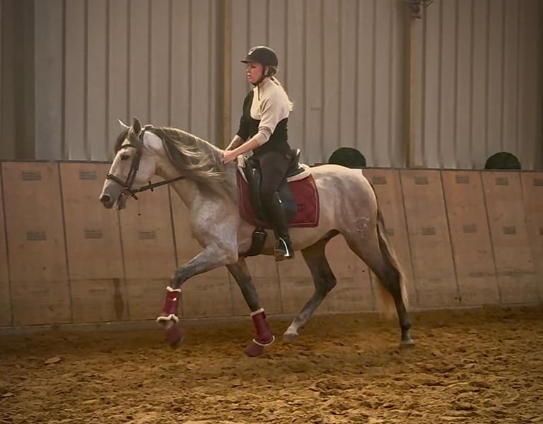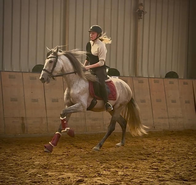 Name: Tunante De Joca Rasse: P.R.E Geschlecht: Wallach Geburtsdatum: 19.03.2021 Alter: 4 Stockmaß: 1.55m Farbe: Schimmel Abstammung: liegt vor Charakter: menschenbezogen, lernwillig, verlässlich, neugierig, intelligent, Ausbildung/Eignung: geritten, Freizeit, Dressur, Working Equitation Geländeerfahrung: zuverlässig, unerschrocken, alleine und in der Gruppe Gesundheit: entwurmt, geimpft, Barhufer, ekzemfrei, Zähne kontrolliert, ostheopatisch behandelt Haltung: Box, Offenstall Besonderheiten: sehr sitzbequem, schmiede und verladefromm, herdenverträglich Die genannten Eigenschaften beruhen auf unserer persönlichen Einschätzung und stellen keine zugesicherten Merkmale dar. Preis: 7900€ (Bruttopreis) Haben wir ihr Interesse geweckt? Um Ihnen einen besseren Eindruck von Tunante zu geben, senden wir Ihnen sehr gerne sein Reitvideo zu. Selbstverständlich stehen wir Ihnen für eine ausführliche Beschreibung des Pferdes, persönliche Beratung und zur Beantwortung aller Ihrer Fragen auch telefonisch zur Verfügung. Bitte schreiben Sie uns hierfür jederzeit eine WhatsApp Nachricht, oder rufen unter folgender Telefonnummer an: +49 15119487595 Unsere Telefonzeiten sind täglich von 7:00 - 13:30 sowie ab 20:00Uhr. Wir freuen uns über Ihre Kontaktaufnahme! Eine klinische oder Röntgenologische Ankaufsuntersuchung kann gerne vom Tierarzt Ihrer Wahl durchgeführt werden. Natürlich kann Tunante sicher und komfortabel in sein neues Zuhause geliefert werden. Wir kümmern uns um alle notwendigen Vorbereitungen und den Transport, damit Ihr neues Pferd stressfrei, gut betreut, versichert und wohlbehalten im neuen Zuhause ankommt. Zurzeit präsentieren wir eine sorgfältig ausgewählte Vielfalt an Verkaufspferden. Bei uns finden Sie garantiert Ihr Traumpferd. Besuchen Sie uns auch gerne auf unserer Homepage unter: www.marvinsroyalhorses.de. Sehr geehrte Kunden, gerne stellen wir Ihnen unsere Pferde vor und führen, putzen, satteln, longieren, Bodenarbeit sowie Probereiten in der Reithalle, auf dem Platz oder im Gelände ist Ihnen möglich, um Ihr neues Familienmitglied näher kennenzulernen. Dieses kostet für ein Pferd 40€, für jedes weitere 30€ und wird beim Kauf wieder erstattet. Unsere Adresse lautet: Grube Ferdinand 50 53577 Neustadt Wied Google Maps: marvinsroyalhorses