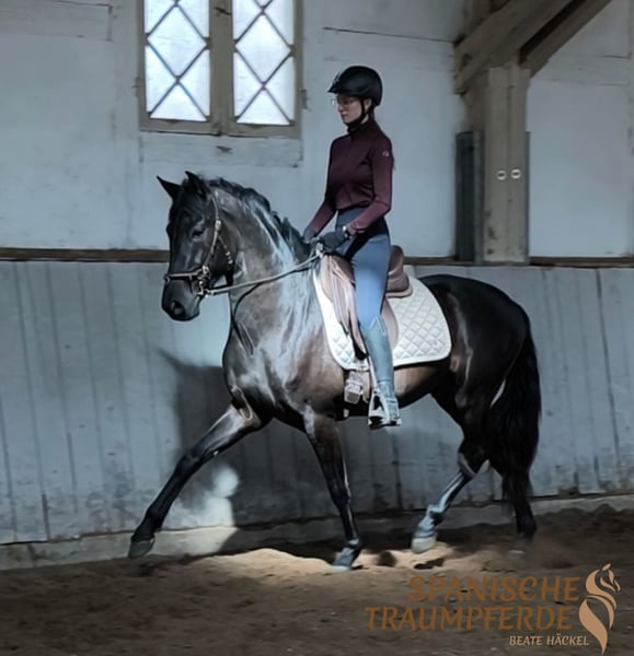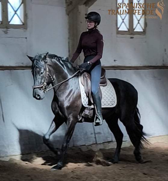 Ein ganz besonderes Pferd mit einem Herzen aus Gold ist unser knapp vierjähriger PRE-Wallach SULTAN SH. Schon auf den ersten Blick verzaubert er mit seiner tiefschwarzen, glänzenden Erscheinung und seinem barocken, stolzen Körperbau – doch es sind vor allem seine großen, sanften Augen, die direkt ins Herz blicken lassen. SULTAN ist ein echter Seelentröster: unglaublich menschenbezogen, voller Vertrauen und stets auf der Suche nach Nähe. Er liebt es, umsorgt zu werden, genießt jede Streicheleinheit und baut eine tiefe Verbindung zu „seinem“ Menschen auf. Mit viel Ruhe und Gelassenheit hat er bereits die ersten Schritte unter dem Sattel gemeistert. Dabei zeigt er sich brav, aufmerksam und feinfühlig in den Grundgangarten – immer bemüht, alles richtig zu machen und seinem Reiter zu gefallen. Noch steht dieser wunderbare junge Wallach ganz am Anfang seines Weges. Mit viel Zeit, Geduld und Herz wird er bei uns schonend und pferdegerecht auf seine Zukunft vorbereitet – und wartet nun darauf, seinen ganz besonderen Menschen zu finden, der ihn weiter begleitet und fördert. Ein Pferd zum Verlieben. Ein Freund fürs Leben. Röntgenbilder liegen vor. Standort: 23795 Traventhal Ein Kennenlernen unseres SULTAN SH ist nach Absprache nahezu jederzeit möglich. Für diesen Kennenlerntermin aus Bodenarbeit, Spazierengehen, gegebenenfalls Probereiten, nehme ich mir ausreichend Zeit, damit du dein Traumpferd in allen Facetten ganz in Ruhe kennenlernen kann. Dafür berechne ich zum Schutz unserer Pferde und um Reittourismus vorzubeugen eine Pauschale von 50 €.