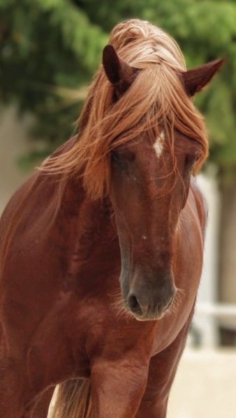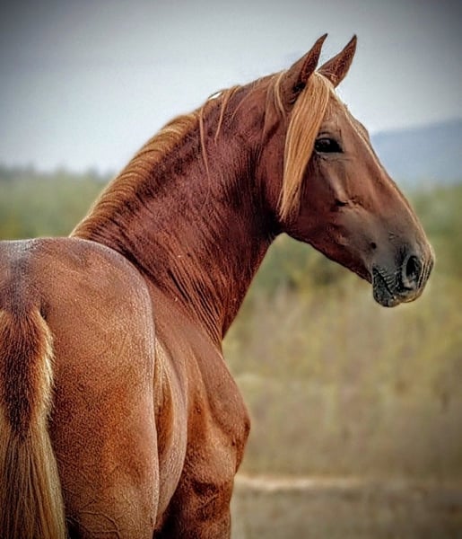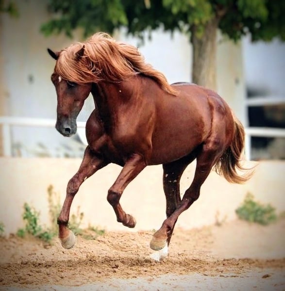 Tango......an incredibly beautiful and young PRE gelding in special color (chestnut) is looking for his FOREVER HOME. He is currently 1.60m tall but is expected to grow a few more centimeters, with a final height of about 1.63m anticipated. This stunning boy impresses with his amazing movement, expansive and elastic gaits, and a particularly loving and people-oriented character. He comes from an excellent private breeding and thus has very good social behavior. At 4 years old, he is well trained in all three gaits with a water snaffle. Of course, he still needs age-appropriate support to improve his balance. He is mostly worked in a relaxed manner in the field and is already very confident there, whether alone or in company. If you like this young, beautiful gentleman, please contact me with your phone number so I can get in touch with you as soon as possible.