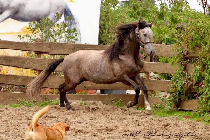 **Sale ad: Elegant PRE stallion in his prime** For sale is an impressive PRE stallion, born in 2022. This young gray stallion impresses with his elegant appearance and a height of 157 cm. He already shows great talent and potential in dressage. **Characteristics:** - Breed: Pura Raza Española (PRE) - Sex: Stallion - Year of birth: 2022 - Color: Grey - Height: 157 cm - Discipline: Dressage This stallion is not only an eye-catcher, but also a promising partner for ambitious dressage riders. If you are interested and would like further information, please do not hesitate to contact us.