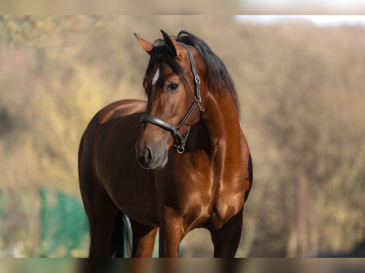 Dieser wunderschöne braune 3,5 Jahre alte PRE Wallach genannt K (ca. 1,63 m) zieht mit seiner Ausstrahlung sofort jeden Blick auf sich. Doch noch mehr berührt sein Wesen: Er ist sehr fein in der Kommunikation und sucht immer die Nähe des Menschen. Beim täglichen Umgang zeigt er sich absolut brav und unkompliziert. Ein junger Wallach, der Vertrauen schenkt und genauso gerne welches bekommt. Er kennt bereits das Reitergewicht und hat die ersten Schritte in seiner Ausbildung gemacht (Gelände und Halle). Dabei zeigt er sich aufmerksam, lernwillig und stets bemüht, seinem Menschen zu gefallen. Aus klassischen PRE-Linien stammend, bringt OAS K den typischen Ausdruck, die weiche Bewegungsmechanik und die innere Ruhe dieser Rasse mit. Eigenschaften, die ihn zu einem besonderen Partner für die Zukunft machen. Ein bezaubernder Youngster für Menschen, die einen sanften, ehrlichen und gefühlvollen Wegbegleiter suchen. K steht in 53578 Windhagen-Rederscheid. Bei Interesse oder Fragen freuen wir uns auf eine Nachricht. Weitere Bilder und Videos können gerne per WhatsApp versendet werden: +4915901725817 Ein Kennenlernen ist nahezu jederzeit möglich. Für das Vorstellen/Probereiten des Wallachs nehmen wir eine Pauschale von 30€. Die Möglichkeit, sich ihr Traumpferd nachhause transportieren zu lassen besteht natürlich auch.