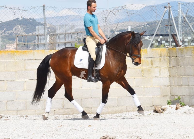lief rustige karakter, nieuwsgierig, aanhankelijk, in de basisgangen gereden en in het terrein, goede afstamming, heeft al röntgenfoto's en is Piro negatief, afstamming: Escalera, Francisco Lazo, Romero Benitez, Castillo Villafranca, hij heeft meerdere gekwalificeerde voorouders www.elegante-andalusier.com