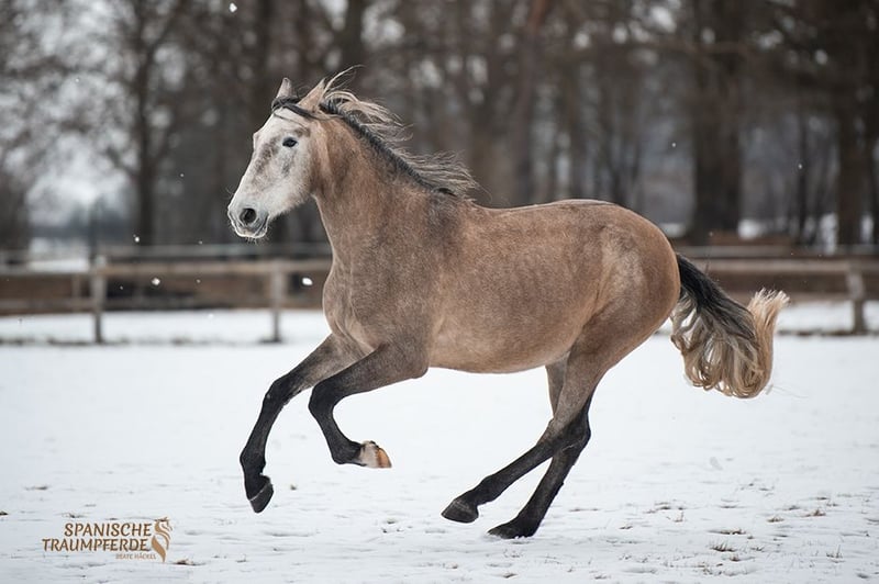 RAPOSO SH ist ein liebevoller, sehr menschenbezogener und sportlicher PRE-Wallach, der von Traventhal aus bereit ist, das Herz seines Menschen zu erobern. Der elegante Schimmel überzeugt mit sehr guten, leichtfüßigen Bewegungen und einem harmonischen Exterieur. Raposo ist angenehm gelassen und absolut unerschrocken – dabei stets aufmerksam, interessiert und lernbereit. Vom ersten Moment an vermittelt er das Gefühl, in seinem bisherigen Leben nur gute Erfahrungen gemacht zu haben. Liegt er beispielsweise entspannt schlafend in seiner Box, kann man sich ruhig zu ihm setzen – vertrauensvoll bleibt er liegen und genießt es, gekrault zu werden. Sein offenes, ehrliches Wesen macht ihn zu einem ganz besonderen Partner. Raposo kennt Sattel und Reitergewicht, ist solide basisgeritten und zeigt sich unter dem Reiter vorbildlich. Er ist leicht nachzureiten und äußerst sitzbequem. Im vergangenen Jahr wurde der hübsche Schimmel überwiegend über akademische Bodenarbeit behutsam auf sein Leben als Reitpferd vorbereitet. Wer auf der Suche nach einem liebevollen, unerschrockenen und sportlich veranlagten spanischen Pferd ist, findet in RAPOSO SH einen wunderbaren Begleiter mit großem Potenzial und einem Herzen aus Gold. Videos sind auf meiner Homepage zu finden: www.spanische-traumpferde.de Röntgenbilder liegen vor. Standort: 23795 Traventhal Ein Kennenlernen unseres RAPOSO ist nach Terminabsprache nahezu jederzeit möglich. Für diesen Termin nehmen wir zum Schutz unserer Pferde eine Pauschale von 50,-