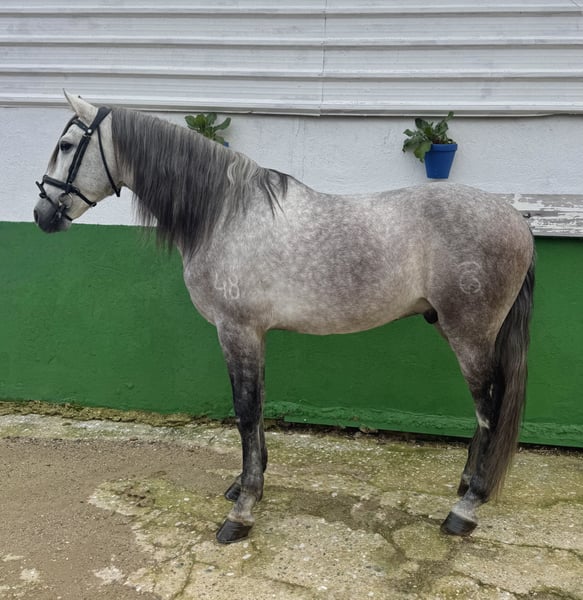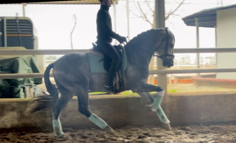 QUIOTO- 5yo PRE registered with ANCCE gelding 163cm This talented boy has three quality paces, highlighting his powerful and uphill canter, good conformation built for sport Schooling according for his age, will have a great ease with flying changes Amazing natural balance and willingness to work Very safe, kind and easy to train Soft in the contact and very comfortable Ideal for an ambitious amateur/ young rider in a program or professional who wants to excel in dressage at FEI levels with an iberian horse, However we think that his self-carriage and elasticity he would be an interesting horse for working equitation as well A rare fusion of spanish elegance and modern athleticism Full history is known Clean x-rays and piro free Contact for serious inquiries 0034 671244954 or spanishorsesdelgado@gmail.com