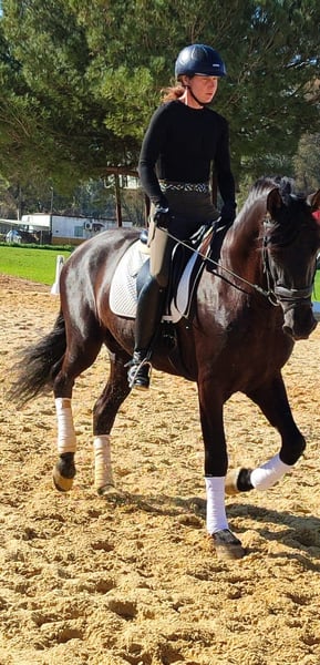 Silencio is a Black 5-year-old PRE gelding who was aptly named, as his name means “silence” or “quiet.” As a foal, he was very calm and kept to himself, and one might almost think that the breeder had forgotten about him. Of course, it wasn’t because this gelding was too inconspicuous. No, he is a beautiful horse with a very typical appearance. But he was definitely a late developer and, at 3 and 4 years old, simply not ready to be put to work. So he was castrated and allowed to run with the weanlings and young stallions until he was 5 years old. Silenzio’s bloodlines are influenced by Cartujano on his father’s side, and he is a grandson of Judio VII, sire of over 379 offspring and still holding the highest coefficient of 1.77 for “breed type.” The dam line goes through Educado X, a top sire in PRE breeding, awarded as an elite stallion, about whom not much needs to be said. Silencio is therefore a very successful example of “old” Carthusian bloodlines paired with modern influence via the mare. A gelding who was raised in a very species-appropriate manner, had time to grow and develop, was broken in late, and has X-rays with no findings. Silencio impresses with his friendly nature, his uncomplicated manner, and his appearance, and is an ideal horse for someone who wants to continue growing with him, as he is currently 5 years old and has been ridden in the basic gaits.