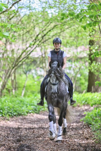 Wunderschöner PRE Wallach freut sich auf seinen neuen Menschen… Er ist mit 5 Jahren im optimalen Alter und wurde spät und schonend angeritten. Sehr gut erzogen und am Boden gearbeitet, sowohl im natural Horsemanship als auch in ersten Ansätzen in der klassischen Handarbeit und in der Freiarbeit. Er lebt auf der Koppel in der Herde, hat einen hohen Rang und geht sehr fair mit den anderen um. Vergangenes Jahr sind wir mit ihm auch schon einen Dorfumzug mitgeritten, was er ganz toll gemacht hat. Ansonsten wird er auf dem Reitplatz gearbeitet, geht spazieren und ab und zu sind wir mit ihm im Hänger unterwegs zum auswärts reiten. Der Bub alle möglichen Seitengänge und Biegungen, hat eine angenehme Arbeitsfreude und gibt sich Mühe. Er hat wunderschöne Gänge, ist sehr korrekt gebaut und hat eine gute Abstammung. Größe ca. 1,65m. Läuft auf Wassertrense und meist mit Dressur- oder Barocksattel. Kennt Schafe, Ponys, Hunde, Traktoren, Autos etc. Er ist ein absolutes Traumpferd mit dem man viel Freude haben kann. Die Hufe werden regelmäßig gepflegt, 1x im Jahr werden unsere Pferde dem Physiotherapeuten und Zahnarzt vorgestellt. Er ist Piroplasmose Träger, wahrscheinlich hat er sich das durch einen Zeckenbiss in dem riesigen Naturschutzgebiet eingefangen, wo er geboren wurde und aufgewachsen ist. Er wurde nie behandelt, es handelt sich um einen Zufallsbefund der von mir natürlich mit angegeben wird. Er ist ein sehr robustes Pferd und einfach in der Haltung. Er kennt und akzeptiert den Stromzaun und war zur Gewöhnung auch schon mal in der Box. Weitere Infos und Videos gerne auf Anfrage.