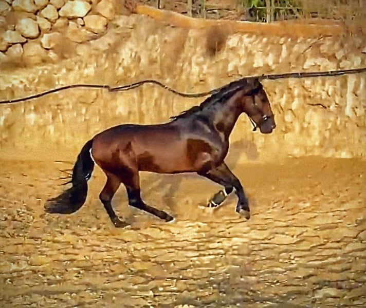 Dieser bildschöne braune PRE Wallach, möchte gern in sein FOR EVER HOME vermittelt werden...🏡 Mit seinen 5 Jahren und einer Größe von derzeit 1,67 m, ist er die perfekte Wahl, für Leute die mehr wollen. Elvis hat einen überragend lieben Charakter und ein unheimlich angenehmes Temperament. Unarten jeglicher Art,sind ihm ein Fremdwort. Der schöne Gentleman hat wunderschöne weiche und elastische Bewegungen und ist zur Zeit brav Basis geritten. Selbstverständlich auf Wassertrense. Großes Talent zeigt er in der Dressur,sagt aber auch zu einem entspannten Ritt am Meer, nicht nein. Er ist sehr talentiert und findet es sehr interessant im Gelände unterwegs zu sein. Dort ist es absolut zuverlässig und nicht schreckhaft. Ebenso kann man mit ihm auch bei Dämmerung einen abendlichen Ritt durch den Ort machen. Er ist obercool und ihn bringt so schnell Nichts aus der Ruhe. Sein schwingvoller ruhiger Trab und seine top bergauf Galopp,lassen die Herzen von Dressurreiter höher schlagen.🤩 Auch der Schritt ist von guter Qualität. Im täglichen Umgang ist er ein wahrer Schatz - gut erzogen und sehr freundlich zum Menschen,ist er für seinen weiteren Weg bereit. Ebenso kann auf eigene Kosten gerne eine Ankaufuntersuchung mit Röntgen vorgenommen werden. Wem dieser liebenswerte und bildschöne junge Mann gefällt, meldet sich bitte mit Telefonnummer, damit ich schnellstmöglich Kontakt zu Euch aufnehmen kann. Unter Umständen ist es möglich, das Mehrwertsteuer entstehen könnte. Das wird aber einzelfallabhängig immer geprüft. Eine Ankaufuntersuchung kann sehr gerne auf eigene Kosten gemacht werden. Sehr gerne arrangieren wir den Transport für Euch 🚛 Standort Spanien Nähe Sevilla Wir haben eine große Auswahl an Pferden aller Kategorien. Vom Fohlen bis zum Gran Prix Kracher, ist alles vertreten. Auch Sonderfarben wie Palomino und Buckskin .