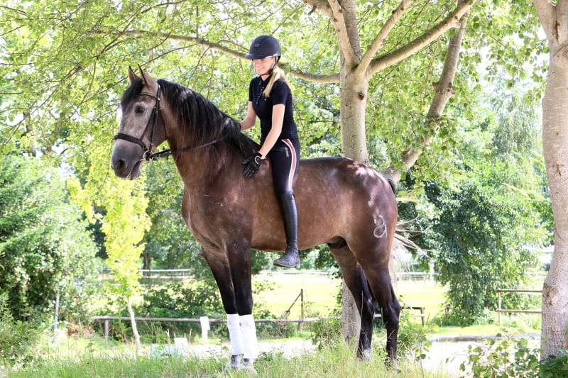 Er betritt die Bühne des Lebens mit einem Glanz, der die Seele berührt – ein Pferd, das nicht nur durch seine Erscheinung beeindruckt, sondern durch seine innere Noblesse die Herzen erobert: Unser fünfjähriger PRE-Schimmelwallach "Marquez", ein majestätischer Prinz in schimmerndem Weiß, mit einem Stockmaß von 1,70 m – kraftvoll, elegant und zugleich voller Sanftmut. Seine Adern tragen das Blut der Großen: Väterlicherseits aus dem legendären Haus Yeguada Marín García, das nicht weniger als den olympischen Grandioso III hervorgebracht hat – ein Name, der Kennern die Augen leuchten lässt. Seine Stutenlinie ist geprägt von den bedeutenden Linien Escalera und Lazo Díaz – eine Kombination, wie sie in ihrer Tiefe und Klasse nur selten zu finden ist. Sein Ausdruck – stolz und wach, mit einem Blick, der Verstand und Gefühl zugleich verrät. Sein Körper – harmonisch gebaut, mit tragfähigem Rücken, aktiver Hinterhand und einer Oberlinie, wie sie das Herz eines jeden Dressurliebhabers höherschlagen lässt. Er bewegt sich mit der Leichtigkeit des Südwinds über den Reitplatz, seine Gänge – elastisch, taktsicher, von natürlicher Aufrichtung getragen. Ob unter dem Sattel oder an der Hand – er zeigt sich stets kooperativ, neugierig und menschenbezogen. Doch was diesen wundervollen Wallach ganz besonders macht, ist sein außerordentlich feiner Charakter: Marquez ist ein Fels in der Brandung – laute Maschinen, Straßenverkehr, hektisches Umfeld? Für ihn kein Anlass zur Unruhe. Mit wachem Verstand, innerer Balance und einem großen Herzen begegnet er der Welt – freundlich, liebevoll, ehrlich und zutiefst dem Menschen zugewandt. Sein Brandzeichen trägt ein stilisiertes „a“ – für das Gestüt Aquilino. Doch wer ihn kennt, weiß: Dieses „a“ steht auch für so viel mehr. Marquez ist: – „a“ußergewöhnlich in seiner Ausstrahlung, – „a“temberaubend schön in Erscheinung und Bewegung, – „a“ratisch – mit adeliger Haltung und natürlicher Würde, – ein „a“usgezeichneter Partner mit Herz und Verstand, – „a“nsprechend – ja, eigentlich sogar „a“nziehend in seiner ganzen Art. Er ist immer „a“ufrichtig und „a“uthentisch, strahlt „a“usdrucksstärke aus und bleibt dennoch gelassen. Einfach nur „a“ufregend schön – aber in sich ruhend wie ein alter Meister, trotz seiner jugendlichen fünf Jahre. Wenn Sie auf der Suche sind nach einem Partner mit Charisma, Präsenz, Verlässlichkeit und einer exzellenten genetischen Grundlage – dann könnte dieser edle Sohn Spaniens genau derjenige sein, den Sie bislang nur erträumt haben.