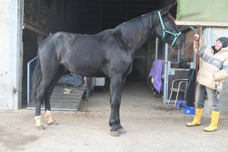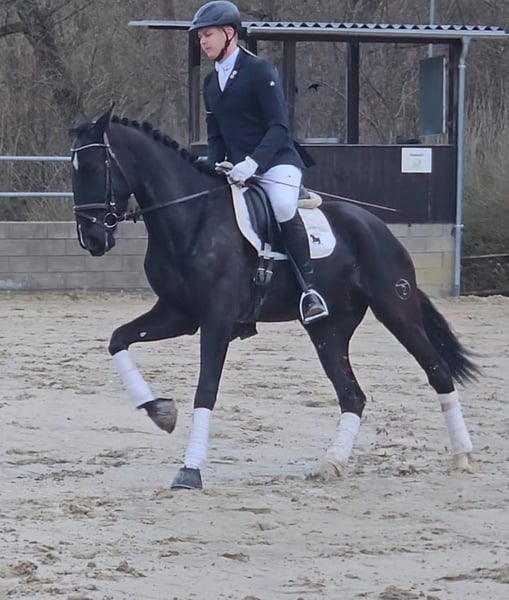 Decano is a very friendly and relaxed, tall PRE black gelding. His current height is approx. 173cm. At 3 years old, Decano is not yet fully grown. He comes from a performance breeding, two half-brothers of him who were born in the same breeder are successful in dressage in the USA. He was gelded in March 2024. Decano has been lunged and knows the accessories. He is farrier and loader friendly. He is calm and gentle to handle. He is regularly vaccinated and wormed. His dam was called Duquesa CCLXXXIV and descended from Trajano. Sire Genio GM, dam: Trajano
