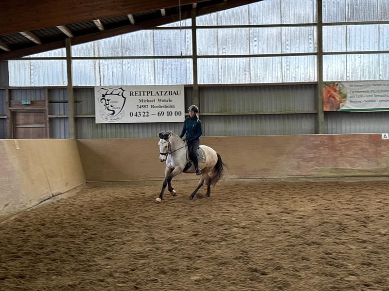 6 jähriger Wallach im besonders hellen Bayo Ton. Im Sommer Cremefarbendes Fell, im Winter weiß. Geritten in den Basics. Start in die Seitengänge und einfachen Gallopwechsel. Spanischer Schritt vom Sattel, wie auch vom Boden aus. Luft nach oben, jedoch fehlt die Zeit um es aktuell fördern. Ist nicht für Anfänger oder schwache Reiter geeignet. Junge Mädchen mit Talent und reiterlichem Können sind kein Problem. Bringt Charakter mit und tagesbedingt „Go“. Deckt sehr gut ab, da er jetzt schon stark im Baroken Stiel steht. Reiterin - 184cm Groß. Mit 1 Jahr importiert. Militärische und Cartujanische Linien enthalten. Keine Allergien, keine OP,… Equipment vorhanden welches mit erworben werden kann. Beherrscht zirzensik Elemente… Anfänge der Piaff, Kompliment, Seitengänge Trab,… Unter folgenden Link siehst du seine Abstammung. https://www.lgancce.com/lgpreancce/asp-publico/arbolGenealogicoPRE/ConsultarArbolGenealogicoPRE.aspx?ID=AxawRK0rW/U= Er steht auf dem Anhänger wie ein Profi, beim Verladen fehlt im manchmal die Routine. Er steht beim Tierarzt / Hufschmied brav und ruhig, war aber bisher immer Barhuf unterwegs. Er geht alleine ins Gelände, kennt Trecker, Autos, Hunde,… Pro Ritt erhebe ich eine Gebühr von 25€ welche gerne verrechnet werden kann beim Kauf.