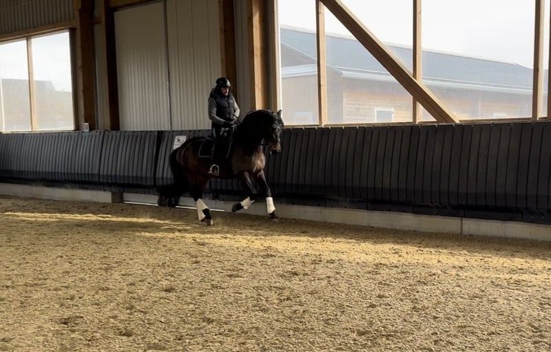 Wir verkaufen im Auftrag der Besitzerin ein vielversprechender Dunkelbrauner Wallach, den wir liebevoll Fuego nennen, geboren im Jahr 2020. Mit einem Stockmaß von 164 cm vereint er eine elegante Größe mit viel Ausdruckskraft. Der junge Dressurwallach hat bereits erste Erfahrungen im Bereich der klassischen Dressur gesammelt und zeigt ein vielversprechendes Talent für die Zukunft, gepaart mit dem imposanten Ausdruck eines PRE. Der Wallach steht im Besitz seit Anfang 2023. Sein angenehmer Charakter und seine gut gerittene Grundausbildung machen ihn zu einem zuverlässigen Partner für ambitionierte Reiter, die ihre Dressurkarriere weiter vorantreiben möchten, aber auch für Anfänger die in den Reitsport einsteigen möchten oder Kinder, ist er durch seine geerdete Art wunderbar geeignet. Der Wallach ist gesund, regelmäßig entwurmt und geimpft und befindet sich in einem gepflegten Zustand. Ein echtes Nachwuchstalent, das mit seiner Lernbereitschaft und seinem Charme begeistert. Für weitere Informationen und einen Termin zur Besichtigung stehe ich gerne zur Verfügung. 0175-1218049