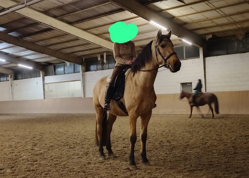 Stijlvolle allrounder zoekt nieuw thuis Vanwege een reductie van de voorraad wordt een expressieve PRE-ruin verkocht – 6 jaar, ongeveer 1,66 m (groeit nog) – een echte allrounder, talentvol en karaktervast. Zijn karakter toont zich als dat van een knuffelzachte grote hond die altijd wil gefallen en qua temperament meer lijkt op een niet-typische PRE. *Vanwege een behandelde maagproblematiek wordt hij onder de marktprijs aangeboden.* Meer informatie graag op aanvraag. Deze volle PRE-ruin valt op door zijn mooie uitstraling en een liefdevol, zeer knuffelbaar karakter. Omdat hij een laatbloeier is, heeft hij voldoende tijd gekregen om zich te ontwikkelen. Vanaf de grond is hij voor alles te gebruiken: longe, dubbele longe en de beginselen van een rijopleiding heeft hij geleerd en hij doet dit met vertrouwen. Bodentraining, wandelen, cavaletti, vrijspringen, rijden aan de hand en in het donker rijden, alles kent hij en doet hij goed. Onder het zadel is hij nog volledig onverdorven. Hij staat netjes stil tijdens het opzadelen en afzadelen, en is veilig gereden in de drie gangarten aan de longe. Vrij rijden doet hij braaf stap en draf, maar dit moet nog verder worden bevestigd. In het terrein toont hij zich betrouwbaar – of hij nu alleen of in een groep rijdt, hij blijft geconcentreerd en ontspannen. In de omgang is hij een zeer braaf paard, laat zich overal aanraken en is zeer sociaal in de kudde. Uiteraard wordt hij regelmatig met mineralenvoeder, ontwormingsmiddelen, hoefverzorging en vaccinaties verzorgd en osteopathisch behandeld. Zijn fundament is stabiel en zijn hoeven zijn top, hij loopt probleemloos over hout en steen zonder hoefbeslag. Wat vooral opvalt, is zijn sterke mensgerichtheid: hij bouwt graag een hechte band op met zijn vertrouwenspersoon en werkt gemotiveerd mee zodra het vertrouwen er is. Een ideale partner voor ruiters / bestuurders die op zoek zijn naar een volledig onverdorven, lief en veelzijdig talentvol paard dat zowel in de dagelijkse omgang als in training enthousiasmeert. Hij voelt zich het best in een open stal of op de wei. Alleen boxen houden is niet gewenst, omdat hij zeer robuust is en zo ook gehouden is. Video’s op aanvraag. De prijs is bespreekbaar. Een passend thuis is belangrijker! Zijn accessoires kunnen, indien gewenst, ook worden meegegeven. Om ruiterrijplezier te voorkomen, rekenen wij voor een proefrit €30, dat bij de aankoop wordt verrekend.