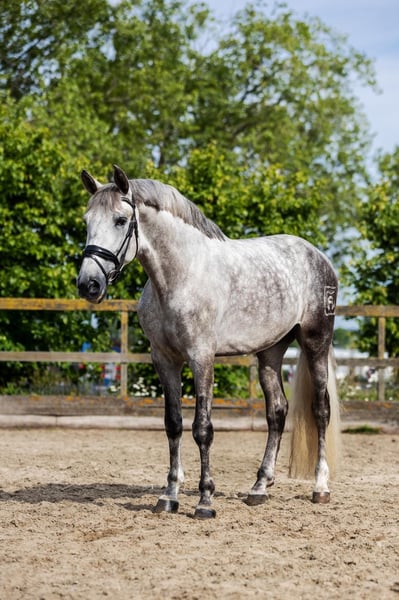 Qualified for MCI Championships and Dutch Championships ✨ A true heartbreaker with champion potential! We are currently offering an exceptional P.R.E. gelding for sale – a real gem with a promising sporting future. Age: 6.5 years Breed: P.R.E. Height: approx. 1.69 m Training level: M-level with flying changes Character: Very fine, balanced, and absolutely people-oriented Exterior: Beautiful and correctly built This charming gelding has been successfully presented at competitions by a young amateur rider. In his very first outing, he managed to stand out against strong competition and won the event. In the subsequent competition with 66 participants, he achieved an excellent 4th place, thus qualifying for: ⭐ MCI Championships ⭐ Dutch Championships (Level L1) Additionally, he placed 8th at the Dutch Championships. His quality, rideability, and remarkable development make him a truly exceptional horse – both for the ambitious competition rider and for lovers of classy Iberian horses. Pedigree – Quality that convinces Gredos de Moreta combines some of the most renowned lines of P.R.E. breeding in his pedigree and is a true example of targeted, high-quality selection. His father Datúro III (by Datil VII) comes from powerful dressage lines with great potential for modern sport. Through Sevillano XVI and Desio, his lineage features elegant and functional P.R.E. horses known for their light-footedness, ability to collect, and rideability. This paternal side brings classic type, correct foundation, and sport-oriented genetics. The maternal side – represented by Hacendosa LII – is deeply rooted in baroque, substantial bloodlines that are particularly valued for their charisma and character strength. Names like Nene XVII, Ultimado V, Hispano IV, and Lejano 1970 testify to substance, nobility, and expression. Notably, the anchoring of classic Escalera and Militar lines is emphasized, known for reliability, willingness to perform, and excellent exterior. Priced in the higher segment.