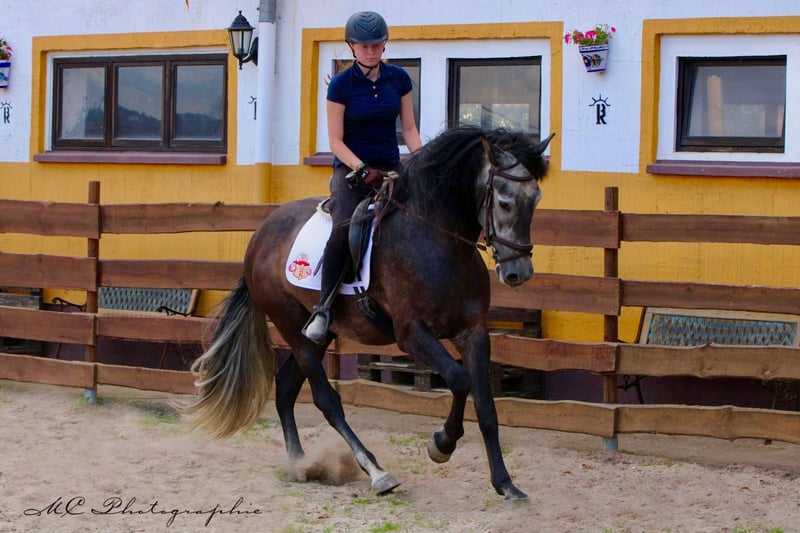 **Annonce de vente : Hongre PRE à vendre** À vendre, un magnifique hongre PRE, né en 2019. Avec une taille impressionnante de 170 cm et son élégant pelage gris foncé, il est un véritable attrait. Ce hongre talentueux est parfaitement adapté à la discipline de dressage et montre déjà des progrès prometteurs dans sa formation. Il est calme à manipuler, monté de manière appropriée à son âge et possède un tempérament agréable, qui convient aussi bien aux cavaliers expérimentés qu'aux débutants ambitieux. Notre hongre PRE n'est pas seulement un cheval sportif, mais aussi un partenaire fidèle qui apporte beaucoup de joie et de variété dans le quotidien équestre. Il est né ici et les deux parents peuvent être visités. Pour toute question ou pour plus d'informations, nous attendons votre message avec impatience ! Les visites sont possibles à tout moment sur rendez-vous.