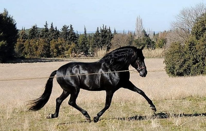 Disponible à la vente 🍀 Jericho du Bonheur 🍀 Hongre, plein papier PRE, 7 ans en 2026, toise 1m57 Par Querido XVII et Idilica Quin (par Burlador Quin) Les dernière photos sont celle de son père Querido XVII. Modèle harmonieux avec beaucoup de crins. Il saura faire chavirer les cœurs avec son tempérament doux et joueur. Jericho dispose de belles allures, il est bien équilibré et ne billarde pas. Idéal pour dressage, MCI, équitation de travail, spectacle ou pour un cavalier souhaitant se faire plaisir avec un cheval ayant de belle capacité. Jericho à été mis au travail l'année dernière afin de préserver son intégrité physique et mentale, il reste donc vert dans le travail et demandera un cavalier ayant un peu d'expérience. Il est visible en Drôme proche de Valence (26) Son budget est évolutif avec le travail. Plus d'informations au 07.87.71.03.38